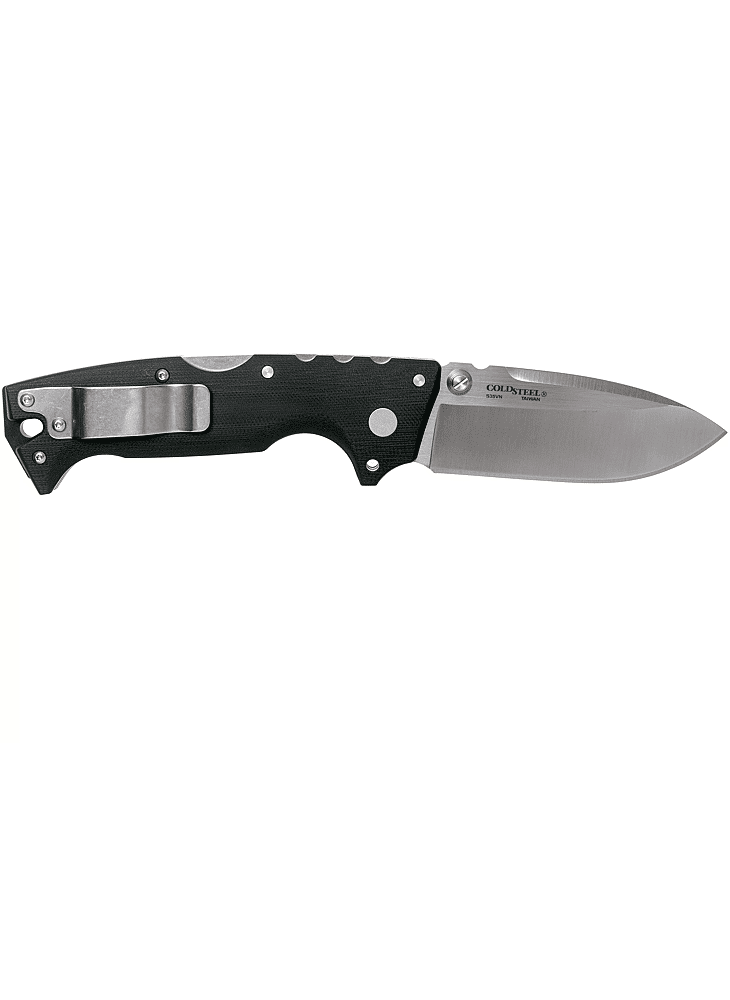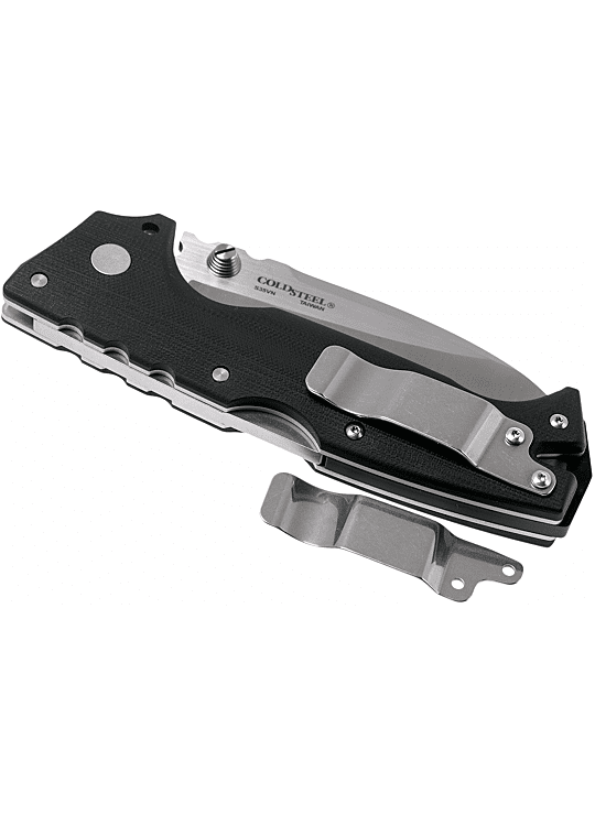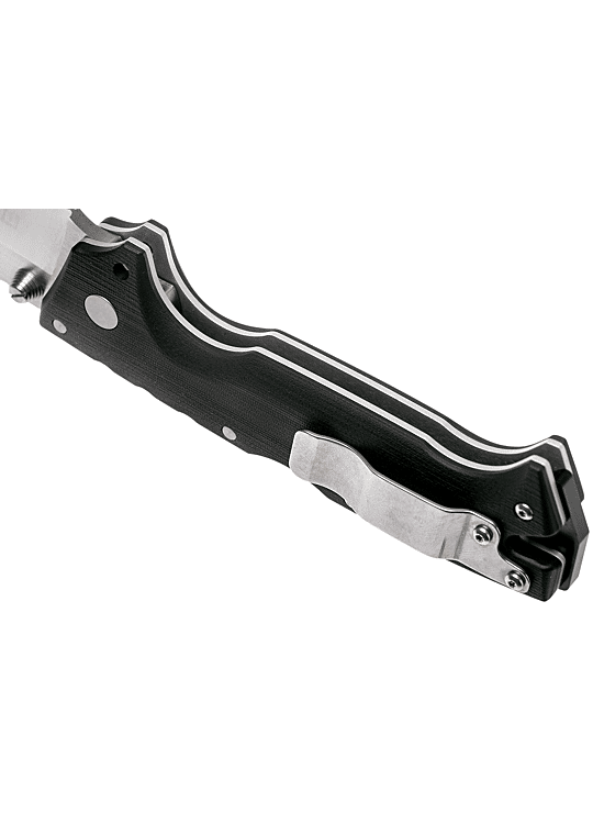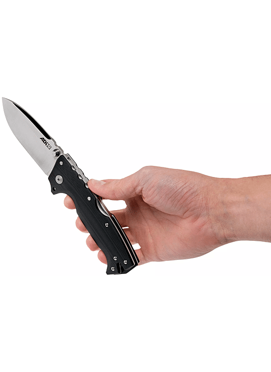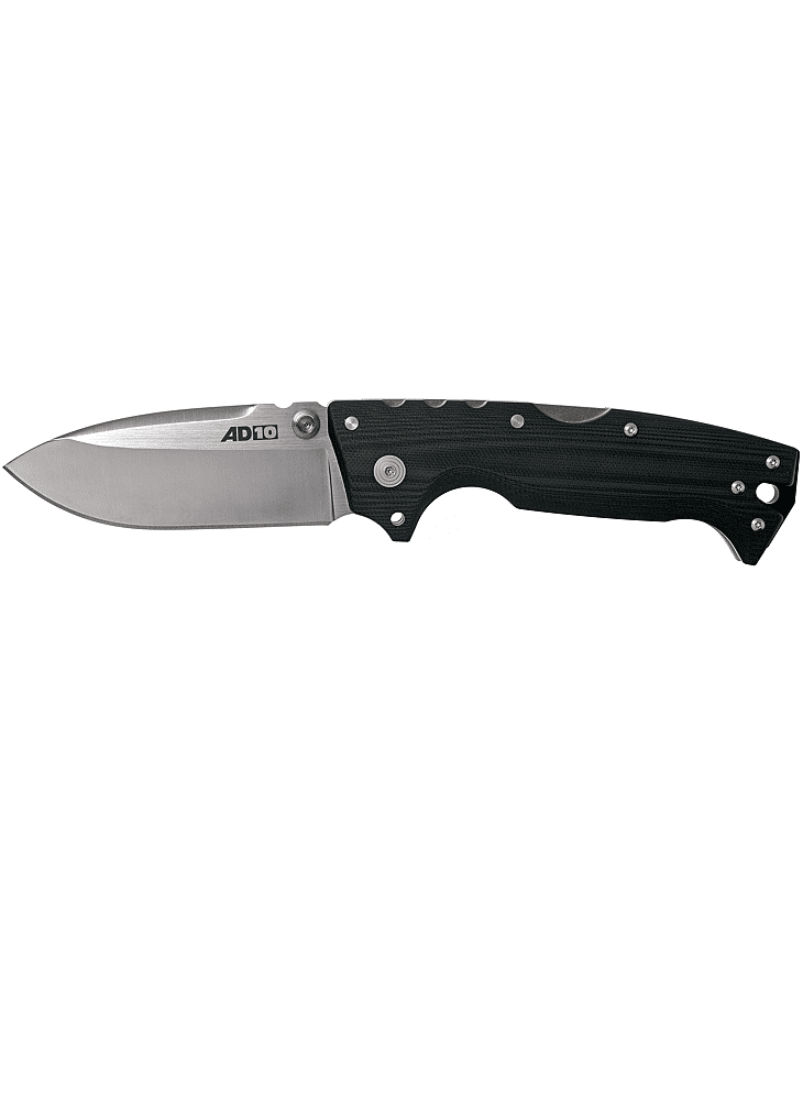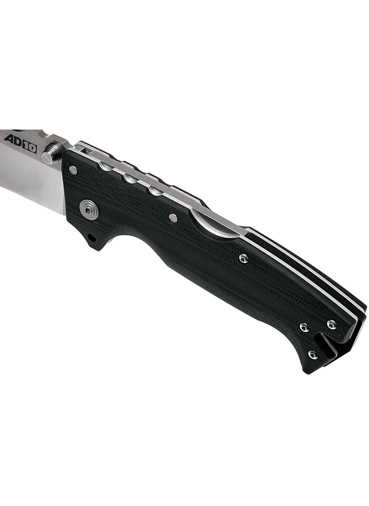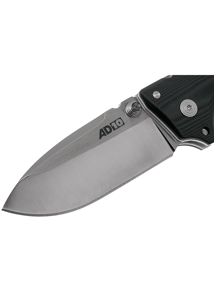 Met de AD-10 heeft Cold Steel weer een prachtig robuust mes afgeleverd de degellijkheid spat er van af. Supersterke Tri-Ad lock 3.8 mm dik drop point lemmet, vlak geslepen en een G-10 handgreep die ergonomisch is afgewerkt.De platte brede clip zorgt voor een hoog draaggemak.