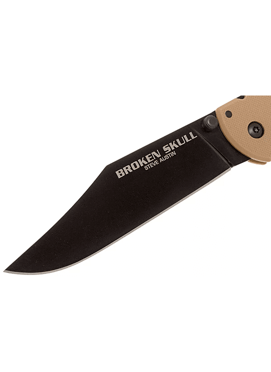De Cold Steel Broken Skull is voortgekomen uit een samenwerking tussen Steve Austin en Cold Steel. Steve Austin is een voormalig worstelaar en acteur met grote liefde voor het outdoor leven. Luisteraars van zijn podcast weten ook dat hij een groot messenliefhebber is. Samen met Cold Steel realiseerde hij het ontwerp van dit geweldige mes.