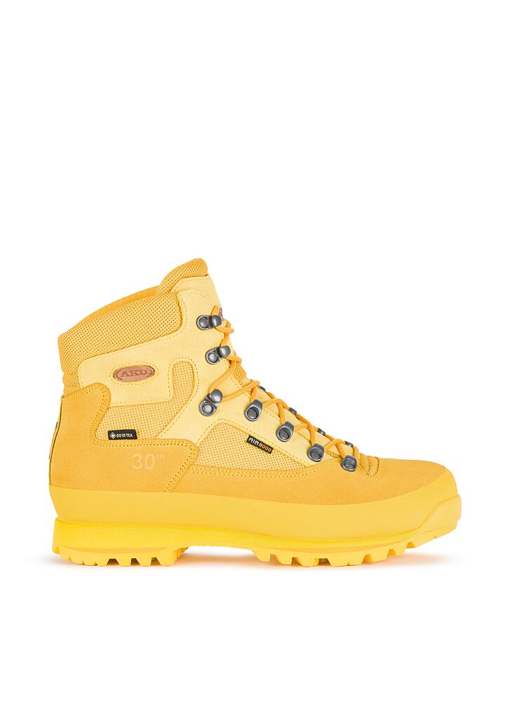 Uitgerust met het historische Vibram Fourà loopvlak, eveneens gemaakt in 1992, viert de Conero 30 GTX de onverbrekelijke samenwerking tussen Vibram en AKU, met name in de exclusieve en onherhaalbare gele versie die de exacte tint van het beroemde merk weerspiegelt. Deze samenwerking bevestigt de constante zoektocht van AKU naar technische partners en geavanceerde stilistische oplossingen om haar producten comfort, lichtheid, maximale prestaties en een origineel en onmiskenbaar design te garanderen.