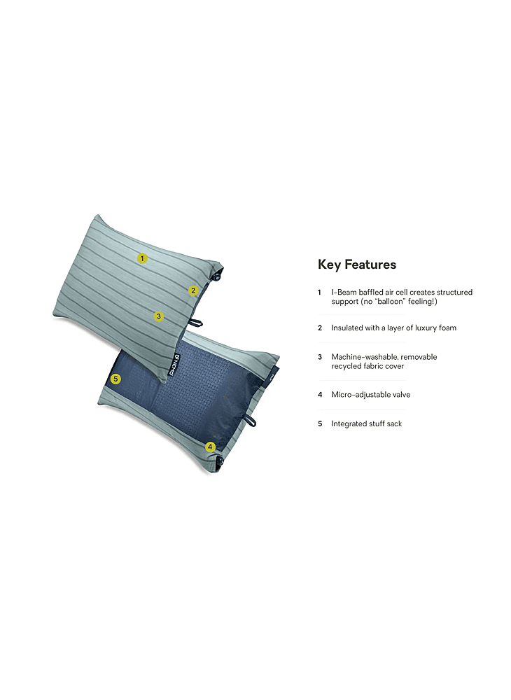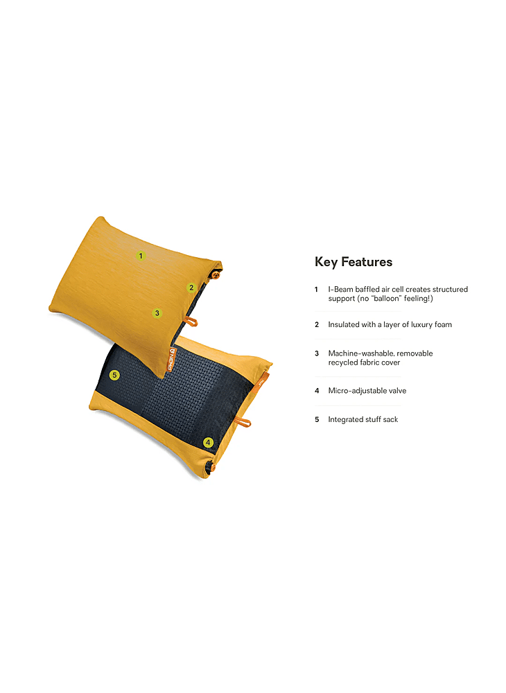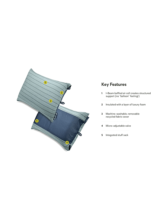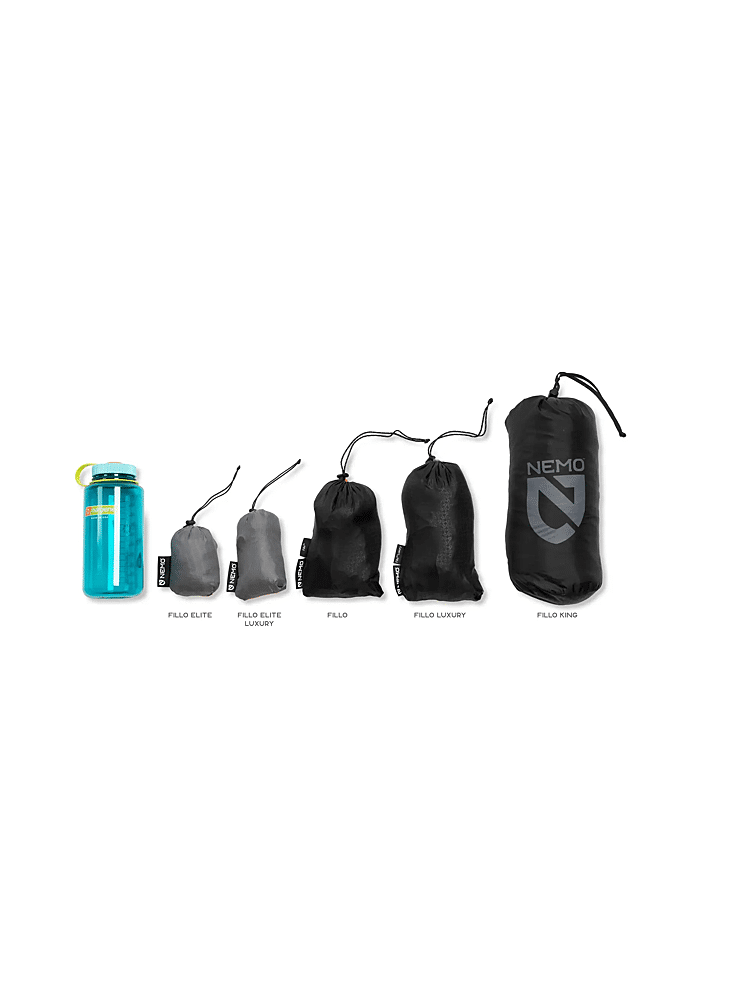 Het bekroonde Fillo rugzak- en campingkussen brengt slim ontwerp naar een vaak over het hoofd gezien stuk uitrusting: het nederige campingkussen. We hebben het klassieke kussen opnieuw ontworpen, met een combinatie van een luchtcel met schotten, dik luxeschuim, een zachte, wasbare hoes van microsuède of jersey en een ergonomisch ventiel. Het resultaat is een kussen dat zacht is en meegeeft zoals uw hoofdkussen thuis, groot aanvoelt als u uw hoofd wiegt, maar toch verrassend klein is.