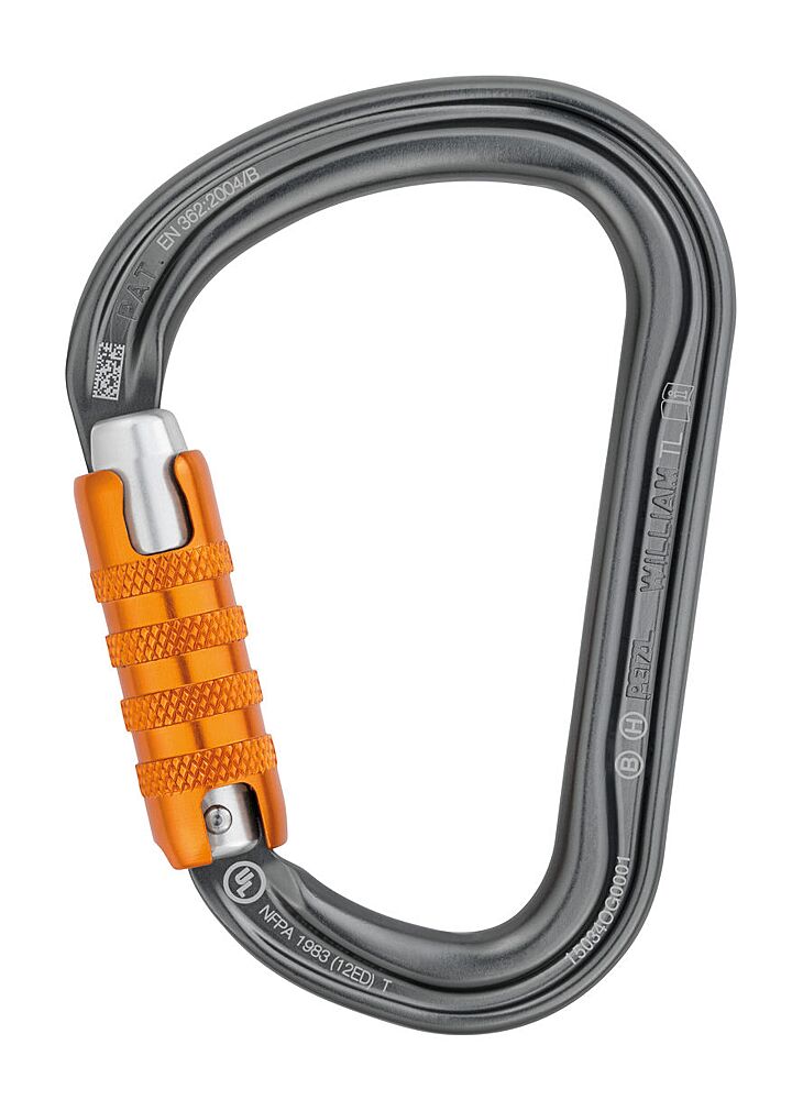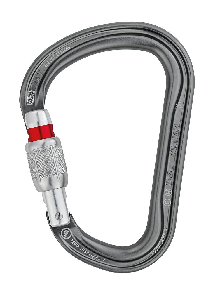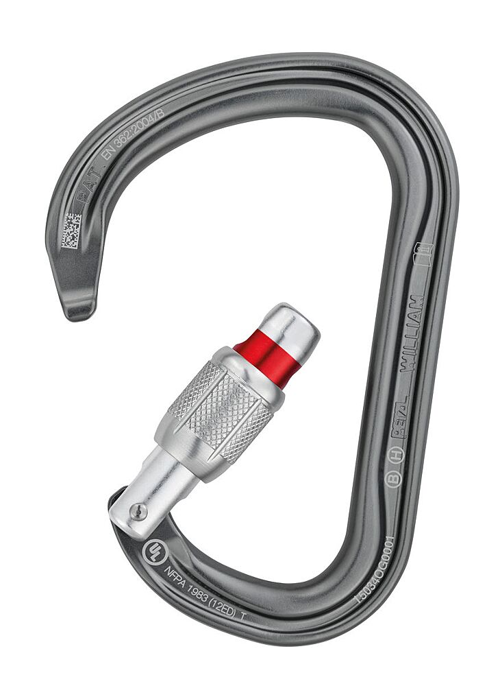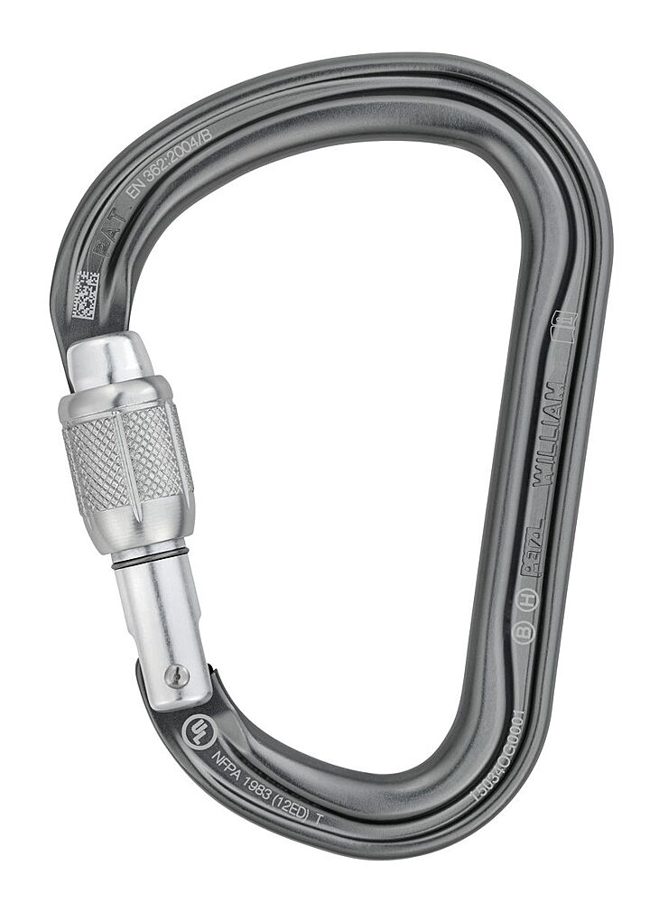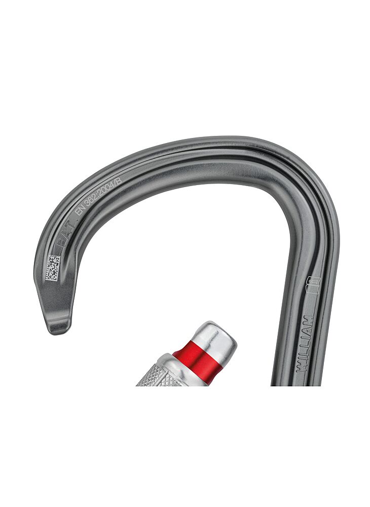 De WILLIAM asymmetrische aluminium karabijnhaak met grote capaciteit heeft een peervorm die praktisch is voor het gemakkelijk verbinden van meerdere voorwerpen. De ergonomie en het Keylock-systeem vergemakkelijken de manipulatie, zelfs met handschoenen aan. De WILLIAM karabijnhaak is verkrijgbaar in twee vergrendelingssystemen: handmatig SCREW-LOCK of automatisch BALL-LOCK.