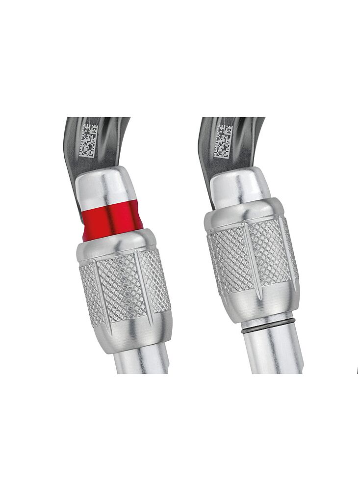 - SCREW-LOCK: de handmatige schroefvergrendeling met rode band geeft een visueel signaal wanneer de karabijnhaak ontgrendeld isOok verkrijgbaar in zwart (TRIACT-LOCK en SCREW-LOCK versies) en goud (TRIACT-LOCK en BALL-LOCK versies)