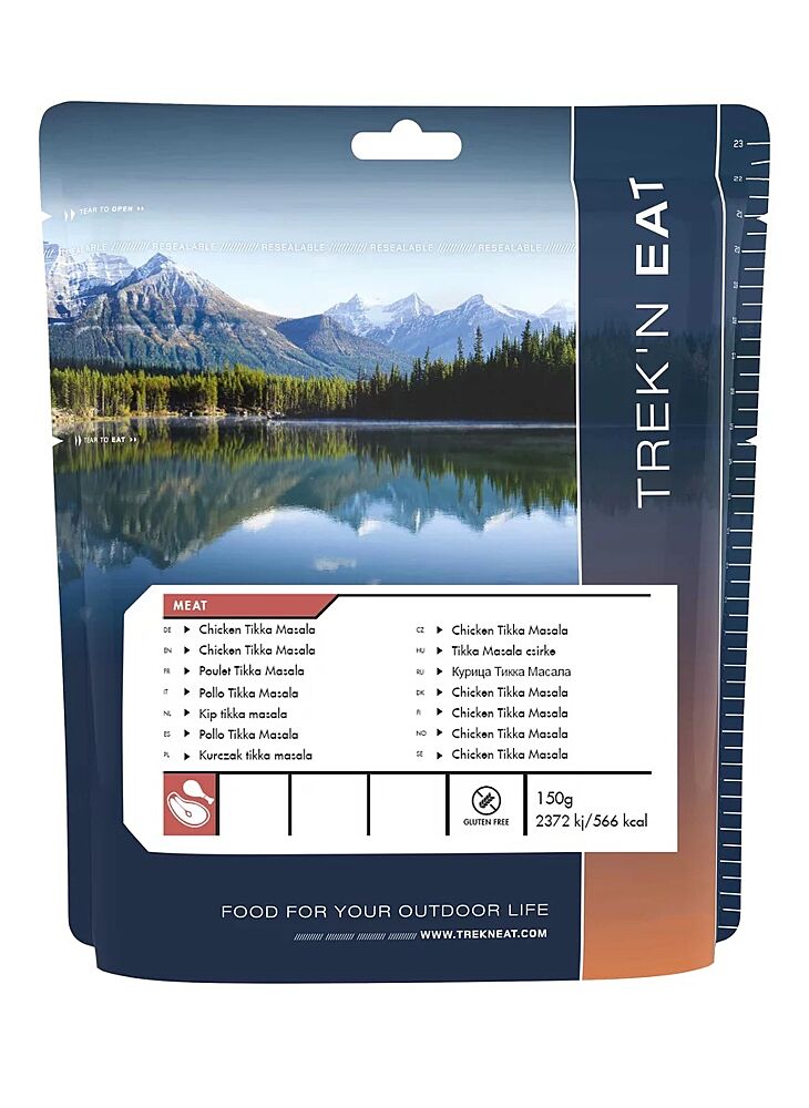 Genieten van een Chicken Tikka Masala garandeert een vleugje Taj Mahal en exotische kruiden in de lucht - ongeacht waar uw outdoor avontuur u brengt. Traditioneel wordt dit Indiase gerecht bereid in een Tandoori oven en bestaat uit gegrilde stukken kip gemarineerd in yoghurt, geserveerd in een pittige tomatensaus. Het wordt geserveerd met rijst. Deze glutenvrije Trek 'n Eat maaltijd bevat al deze ingrediënten om de authentieke smaak te garanderen, zelfs op reizen ver weg van India en duurt slechts 8 minuten om te bereiden. Bevat lactose en melk.