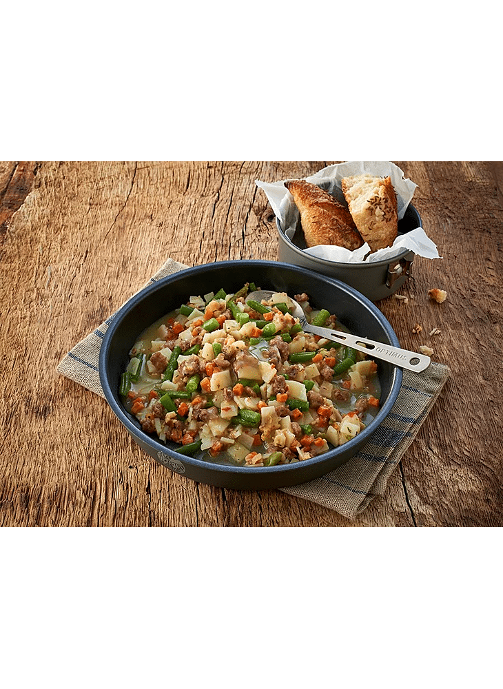 Echt thuis koken voor outdoor liefhebbers: Onder het motto "Eet net als bij mama" is de Hearty Potato Stir Fry met Rundvlees en groene Bonen klaar om u een smaakvolle smaakervaring en voedingsgoedheid te bieden in slechts 10 minuten. Rundvlees en bonen werken samen als ingrediënten om een hartige eenpansmaaltijd te creëren. Zoals gebruikelijk bij Trek'n Eat zijn alle ingrediënten natuurlijk. Bovendien zijn kunstmatige kleurstoffen, conserveringsmiddelen en smaakversterkers weggelaten. Giet er kokend water bij en geniet na 10 minuten van deze smaakvolle maaltijd. Goed versterkt ben je nu klaar om door te gaan met de trekking of klimtocht.